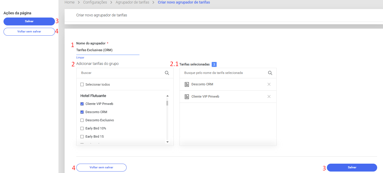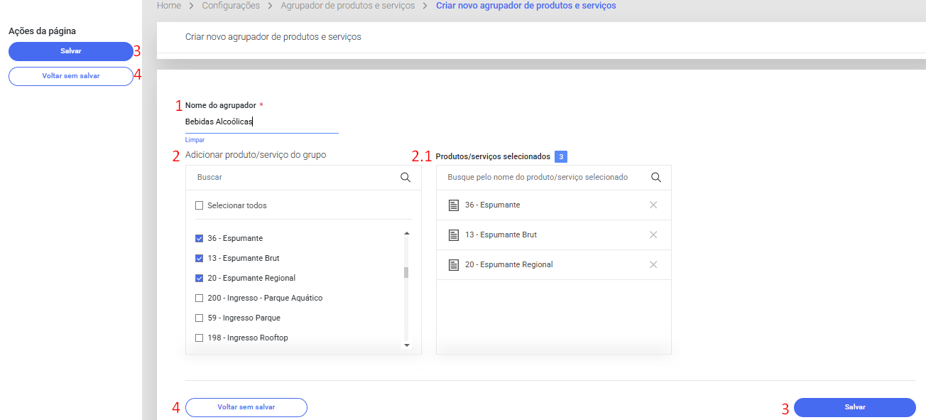 Clique em "Salvar" (3) para concluir a ação e criar/atualizar o agrupador.