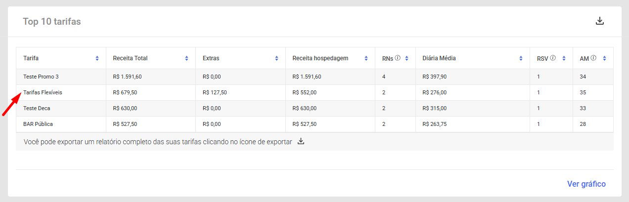 Os agrupadores permitem uma visualização consolidada. Para retornar à visualização individualizada das tarifas, quartos ou extras que foram agrupados, basta remover a seleção do agrupador nos filtros.