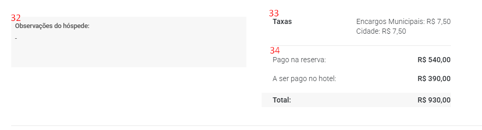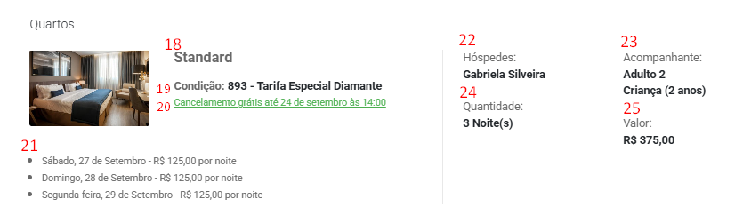 Regiões/Hotéis/Quartos: Informações da reserva.